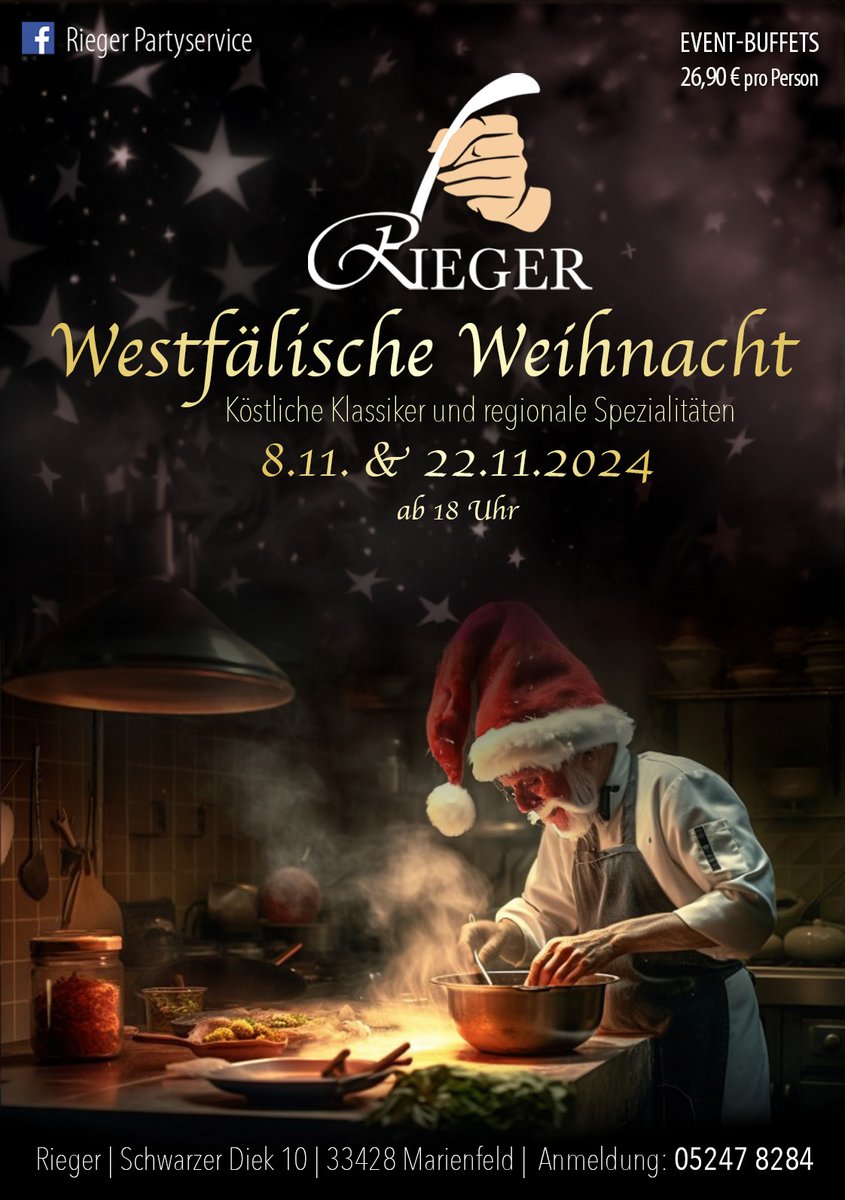 Genießen Sie ein ganz besonderes Themenbuffet in entspannter Atmosphäre in unserer Event-Location in Marienfeld. Delikates am Schwarzen Diek 10 servieren wir Ihnen für ein Familien- oder Firmenfest, eine Jubiläums- oder Weihnachtsfeier sowie einen köstlichen Abend in geselliger Runde. Unsere Räumlichkeiten bieten Platz für geschlossene Gesellschaften ab 25 Personen für bis zu 60 Personen. Termine und eine individuelle Ausrichtung Ihrer Veranstaltung bieten wir Ihnen gerne auf Anfrage und nach Absprache.