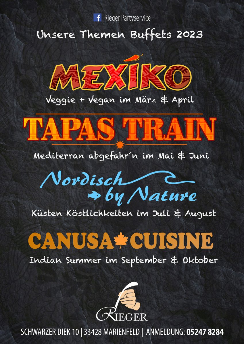 Genießen Sie ein ganz besonderes Themenbuffet in entspannter Atmosphäre in unserer Event-Location in Marienfeld. Delikates am Schwarzen Diek 10 servieren wir Ihnen für ein Familien- oder Firmenfest, eine Jubiläums- oder Weihnachtsfeier sowie einen köstlichen Abend in geselliger Runde. Unsere Räumlichkeiten bieten Platz für geschlossene Gesellschaften ab 25 Personen für bis zu 60 Personen. Termine und eine individuelle Ausrichtung Ihrer Veranstaltung bieten wir Ihnen gerne auf Anfrage und nach Absprache.